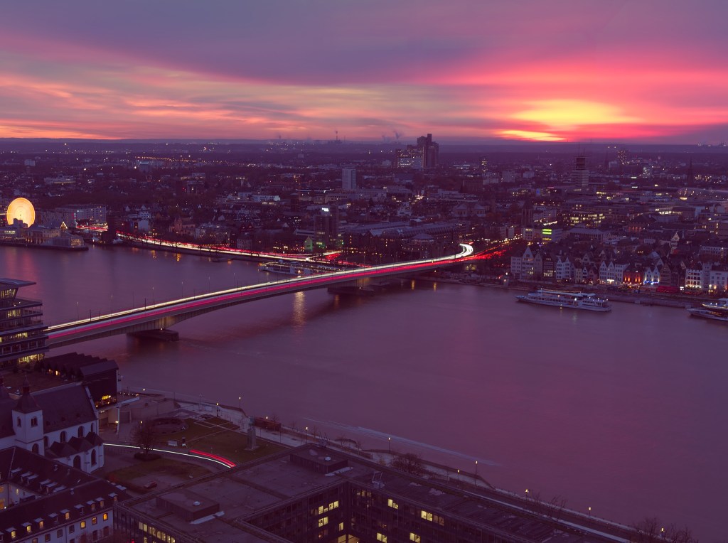 Vielen Dank für Dein Lob. Die Möglichkeit in Köln vom KölnTriangle ( http://www.koelntrianglepanorama.de ) zu fotografieren ist schon alleine ein Garant für gute Fotos. Die Aussicht ist grandios. Man muss nur abwarten, bis das Licht seine unterschiedlichen Variationen zeigt, oder die Nacht die Lichter spielen lässt.