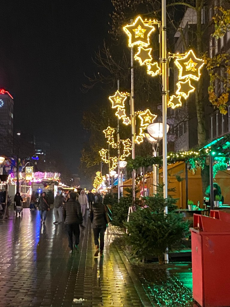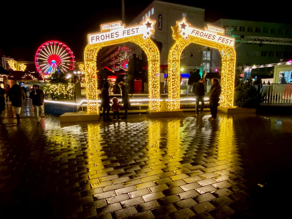 Wie jedes Jahr diesmal nicht. Duisburg hat eine neue Beleuchtung bekommen. Die neue Beleuchtung aber kann nicht darüber hinweg trösten, dass Weihnachten aus Bratwurst, Glühwein und Fischbrötchen besteht.